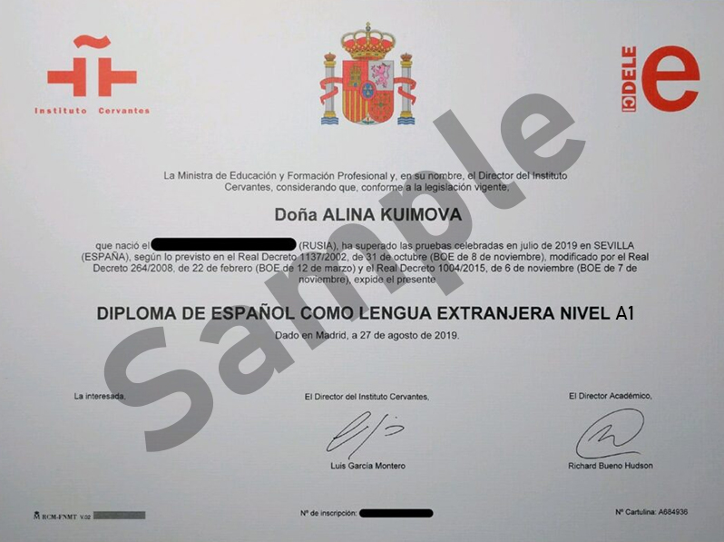 Diplomas of Spanish as a Foreign Language (DELE) are official titles certifying degree of competence